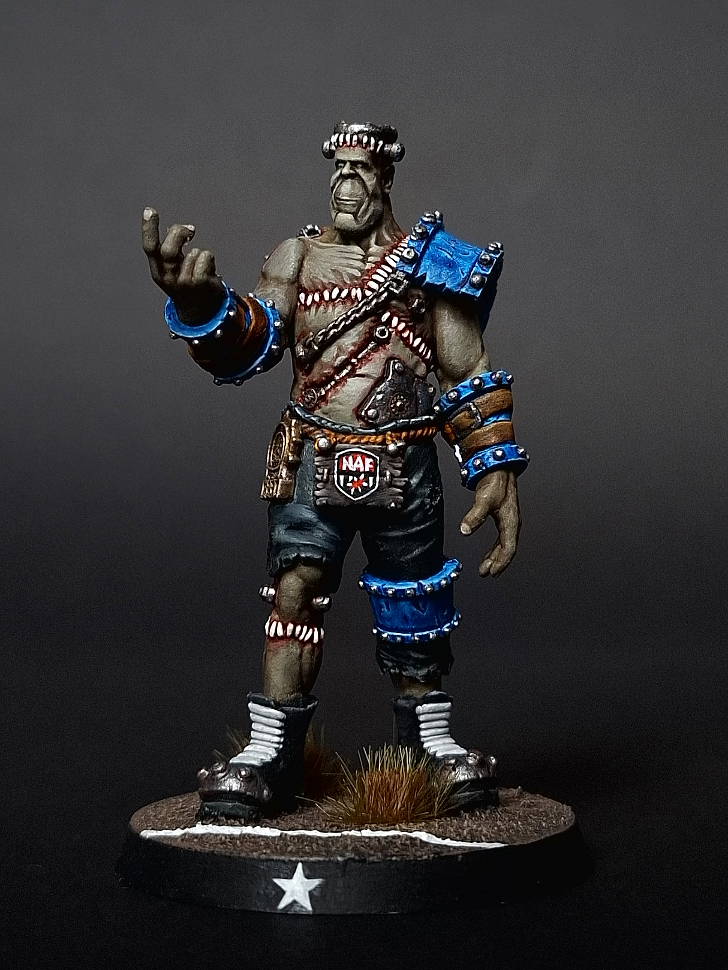In hindsight, I shouldn't have placed him on a ball, given that he has the No Hands skill. A skull or a helmet would have been much more appropriate.