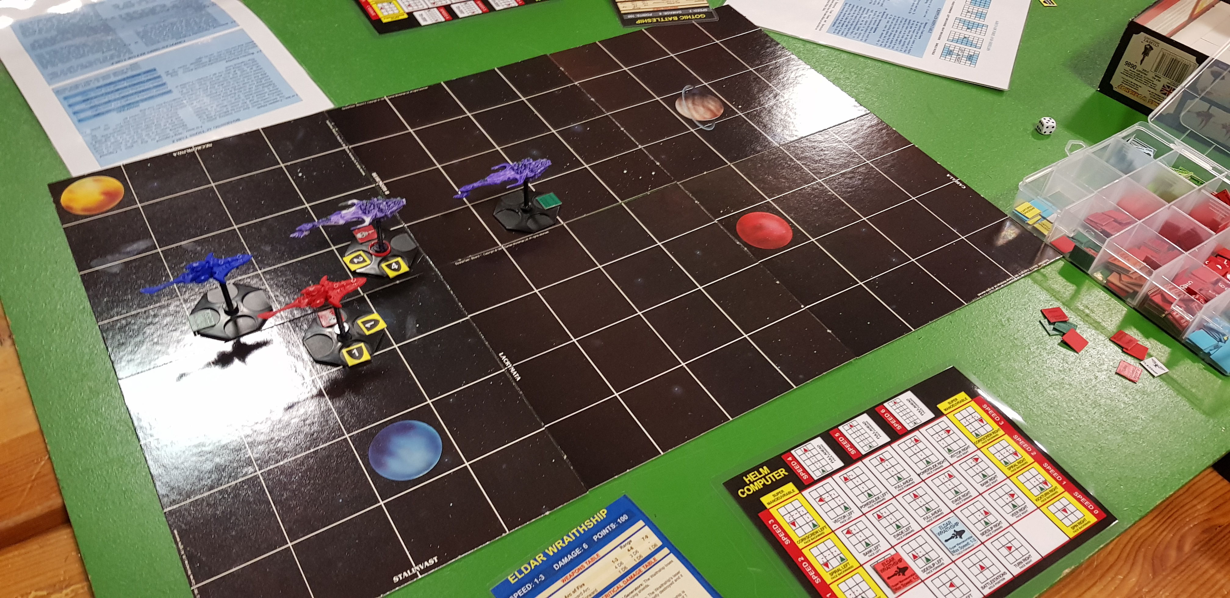 This overall gives the game some tactical depth and is quite fun. However, it doesn’t scale up well to higher point values, possibly because there are only two different Eldar ship types.